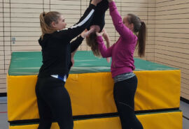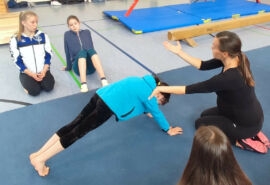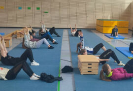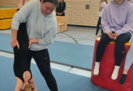 Ein großes Dankeschön gilt Stefanie, Laura, Valentina, Mirijam und Marlies, die den Tag geplant und umgesetzt haben. Neben dem Themenblock „gesundheitsorientiert trainieren“ standen vor allem verschiedene Helfergriffe und richtiges Sichern im Vordergrund. Nach Brezeln ging es geschlechtergetrennt weiter mit dem Balkenkonzept des Deutschen Turnerbundes und Mobilitäts- und Kräftigungsübungen für die Schulter. Tipps und Trick für einen perfekten Handstand rundeten das Programm stimmig ab.