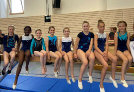 Im ersten Durchgang, welcher um 10.30 Uhr begann, turnten die Freizeitgruppe und die Leistungsgruppen der Altersklassen (AK) 7-8 und 9-10. Der Wettkampf verlief verletzungsfrei und die Turnerinnen konnten stolz ihre Übungen präsentieren. Trotz ein paar Stürze am Zittergerät Balken ließen sich die Turnerinnen nicht unterkriegen. Zahlreiche Eltern, Geschwister, Freunde und Bekannte kamen, um den Mädels zuzuschauen und sie anzufeuern. Zudem versorgten sie uns mit vielen verschiedenen und leckeren Kuchen.