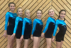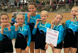 Im darau olgenden zweiten Durchgang trat ebenfalls eine Mannschaft vom TSV in der AK 10+11 an. Neben 8 weiteren Mannschaften zeigten auch sie saubere Übungen an allen vier Geräten. Insgesamt erturnten sich Charlotte Gauggel, Lena Alonso-Ruf, Mina Kaufmann, Annie Sieghörtner, Ann Strecker und Naja Cornelsen den dritten Platz.